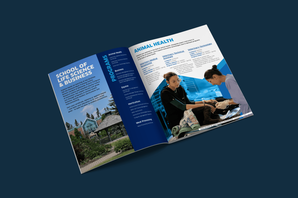 The viewbook is a key promotional tool and an important component of the admission process for all post-secondary institutions. It is an overview of programs and also gives a taste of what campus life at the college will be like.