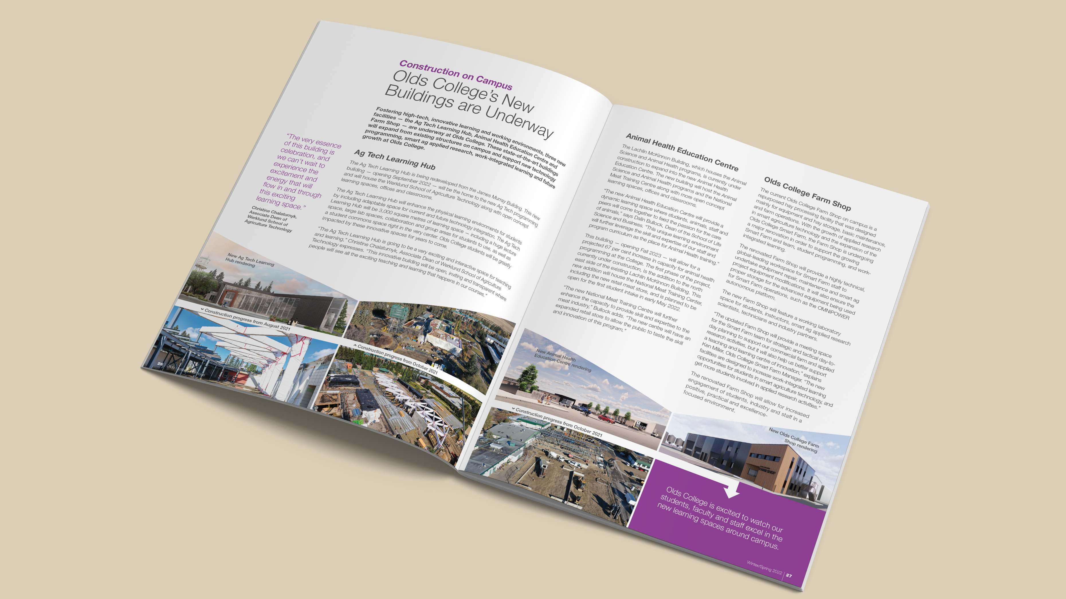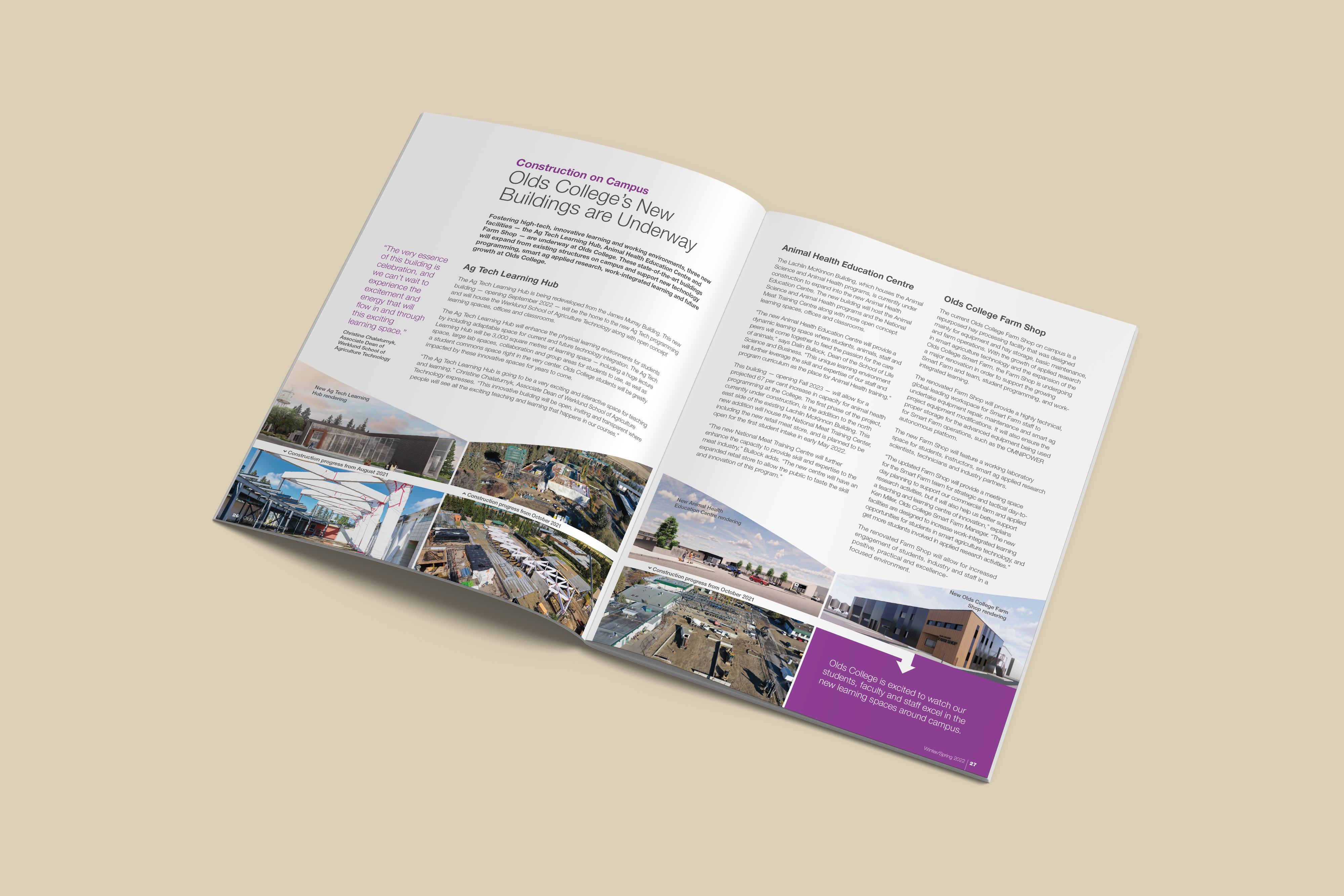 Horizons, published twice yearly and with a circulation of 16,500, is the magazine featuring the latest academic and research news from Olds College of Agriculture & Technology. I work closely with our editor to design a magazine that serves as a showcase for Olds College’s projects dedicated to its social purpose: “to help transform agriculture for a better world”.