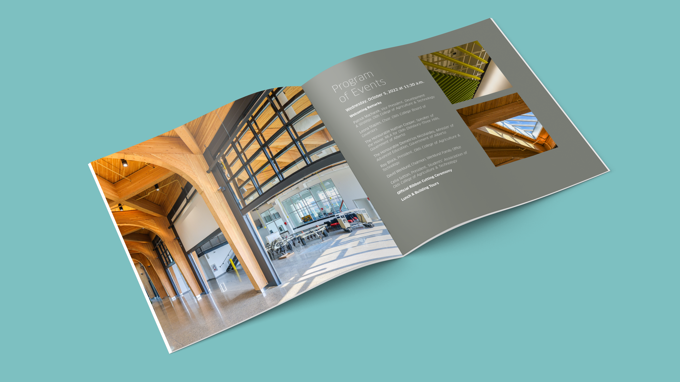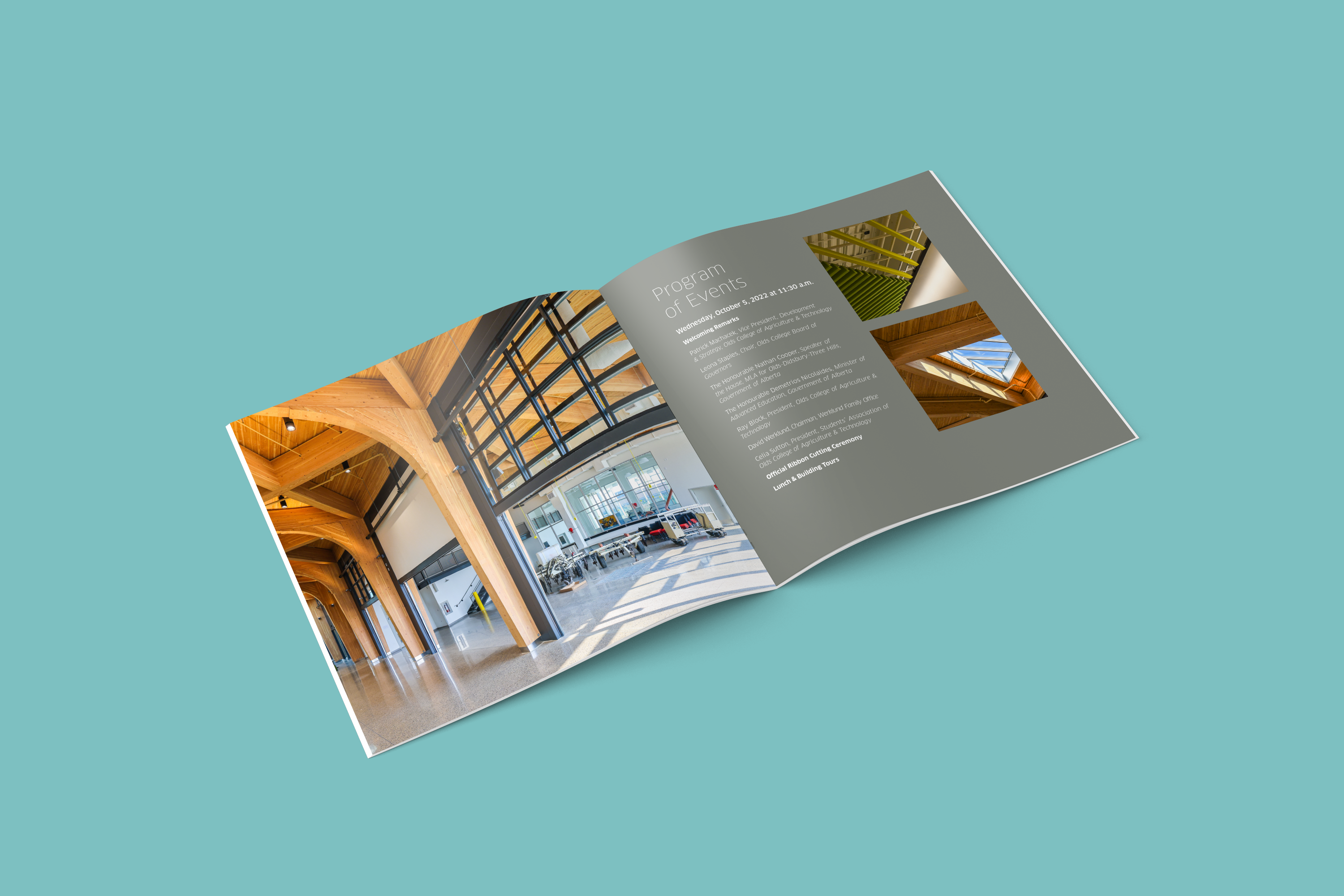 I created a commemorative booklet for the guests to take away as a souvenir of the event, celebrate the generosity of David Werklund and Susan Norman-Werklund, and showcase the indoor and outdoor spaces.